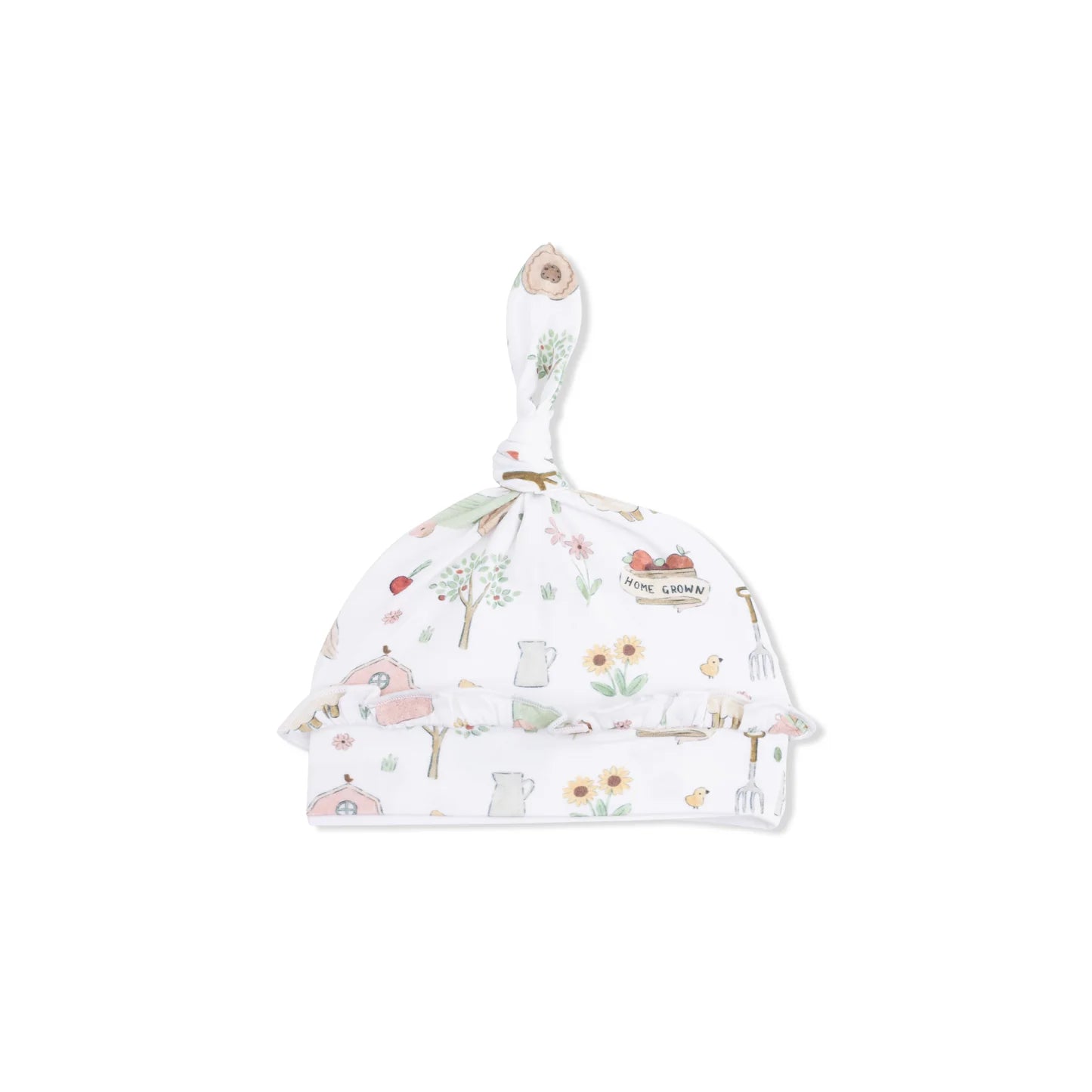 Angel Dear Ruffle Knotted Hat in Cute Farm Animals Pink