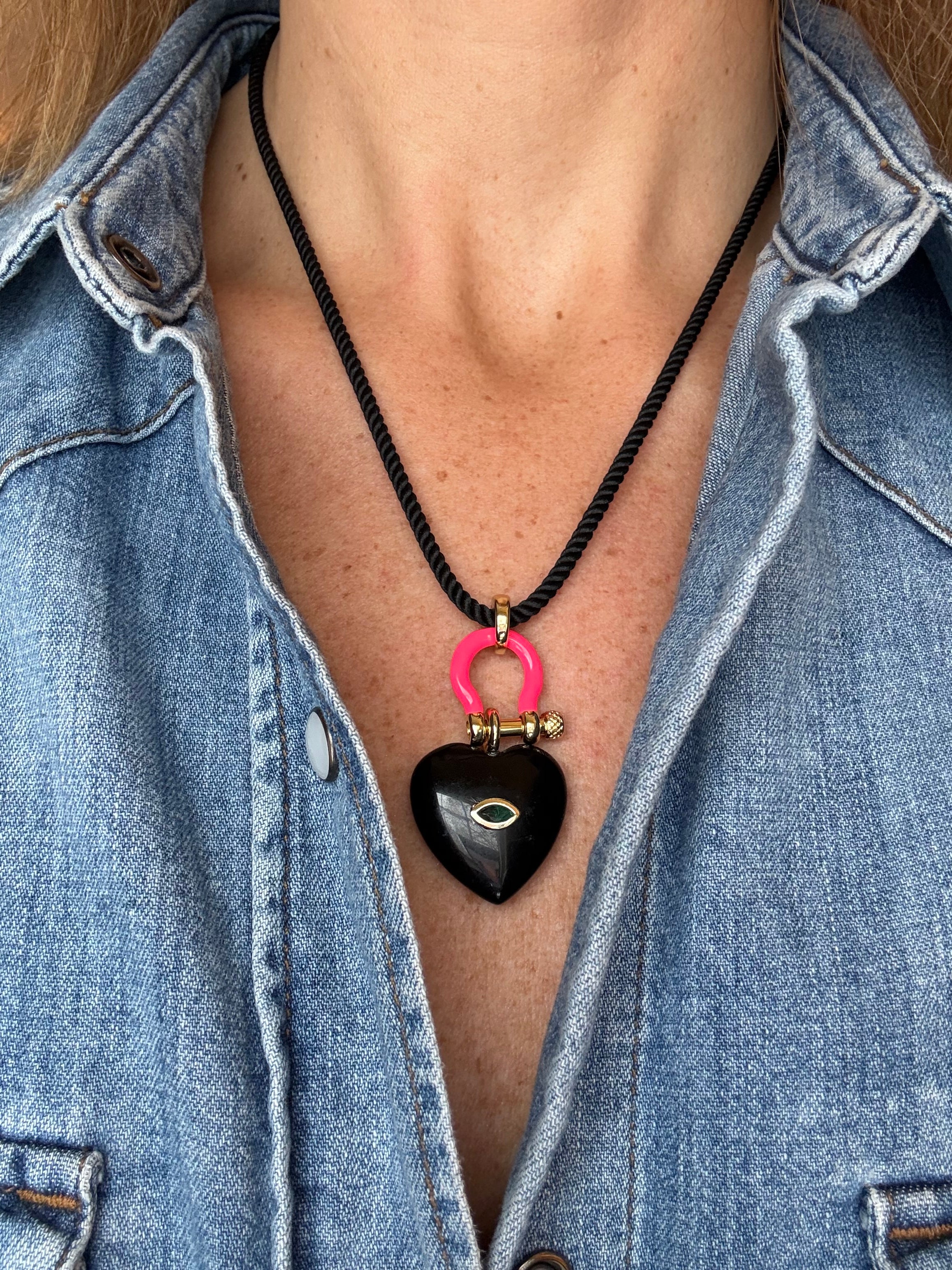 Forever Blythe Obsidian Heart Pendant Necklace in Hot Pink and Black