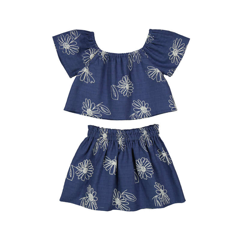 Gauze skirt and top combo. The lightweight fabric ensures breathability and comfort for warm-weather wear, while the cropped silhouette offers a modern, stylish fit.