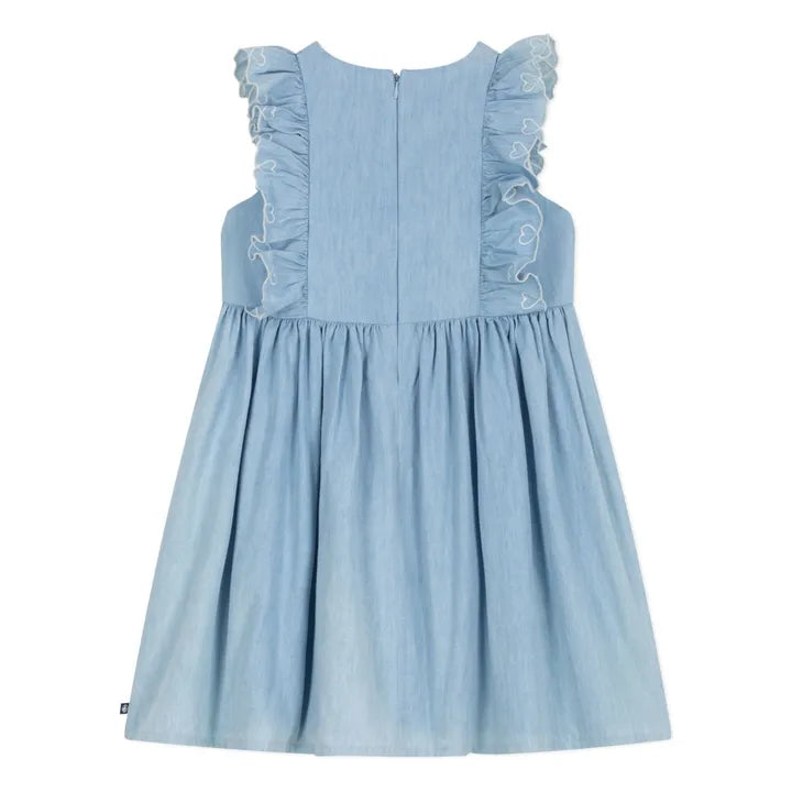Petit Bateau Chambray Hearts Dress in Blue