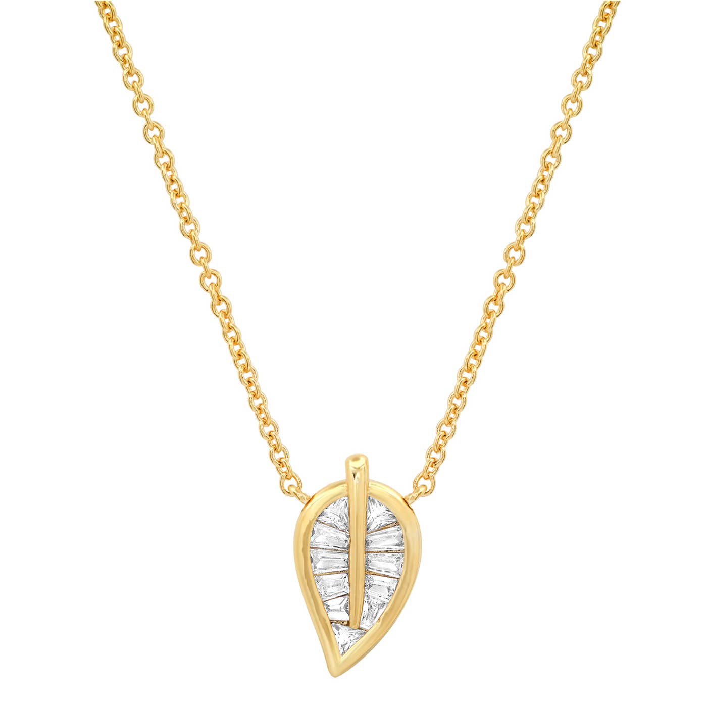 Showcase your style with Tai Jewelry's Baguette Leaf Pendant Necklace. This piece is a testament to the dedication of our founder, Tai, who noticed a lack of high-quality fashion jewelry with fine jewelry finishing. Perfect for those who appreciate unique, artisan jewelry, this necklace reflects Tai's commitment to supporting fine artisans in Thailand. Enjoy this globally recognized, trendsetting accessory from our extensive collection.