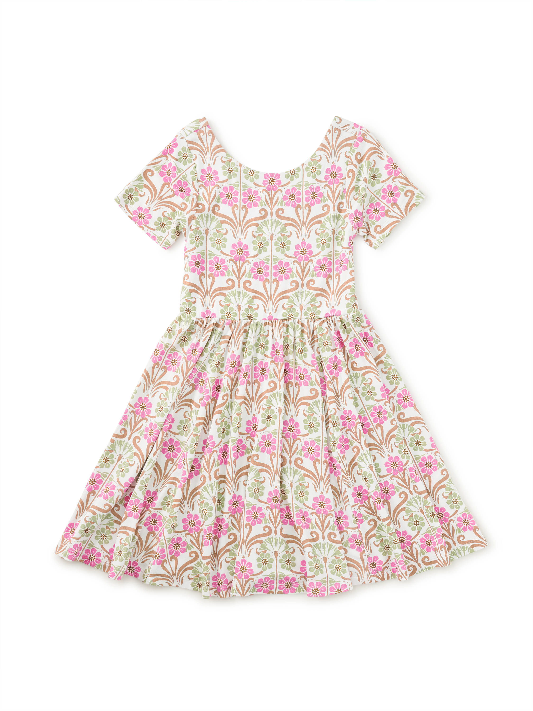 This beloved ballet silhouette gets an extra-soft update in our new PlaySoft fabric, designed for everyday comfort and easy movement. The smooth bamboo jersey feels cool and gentle against the skin, with just the right amount of stretch to support spins, skips, and everything in between. A classic crew neckline in front balances a softly scooped back, while the full circle skirt brings that twirl-worthy shape kids love. Finished with a lined bodice and elastic waist, it pairs perfectly with leggings or Somersault Shorts for effortless, all-day versatility.