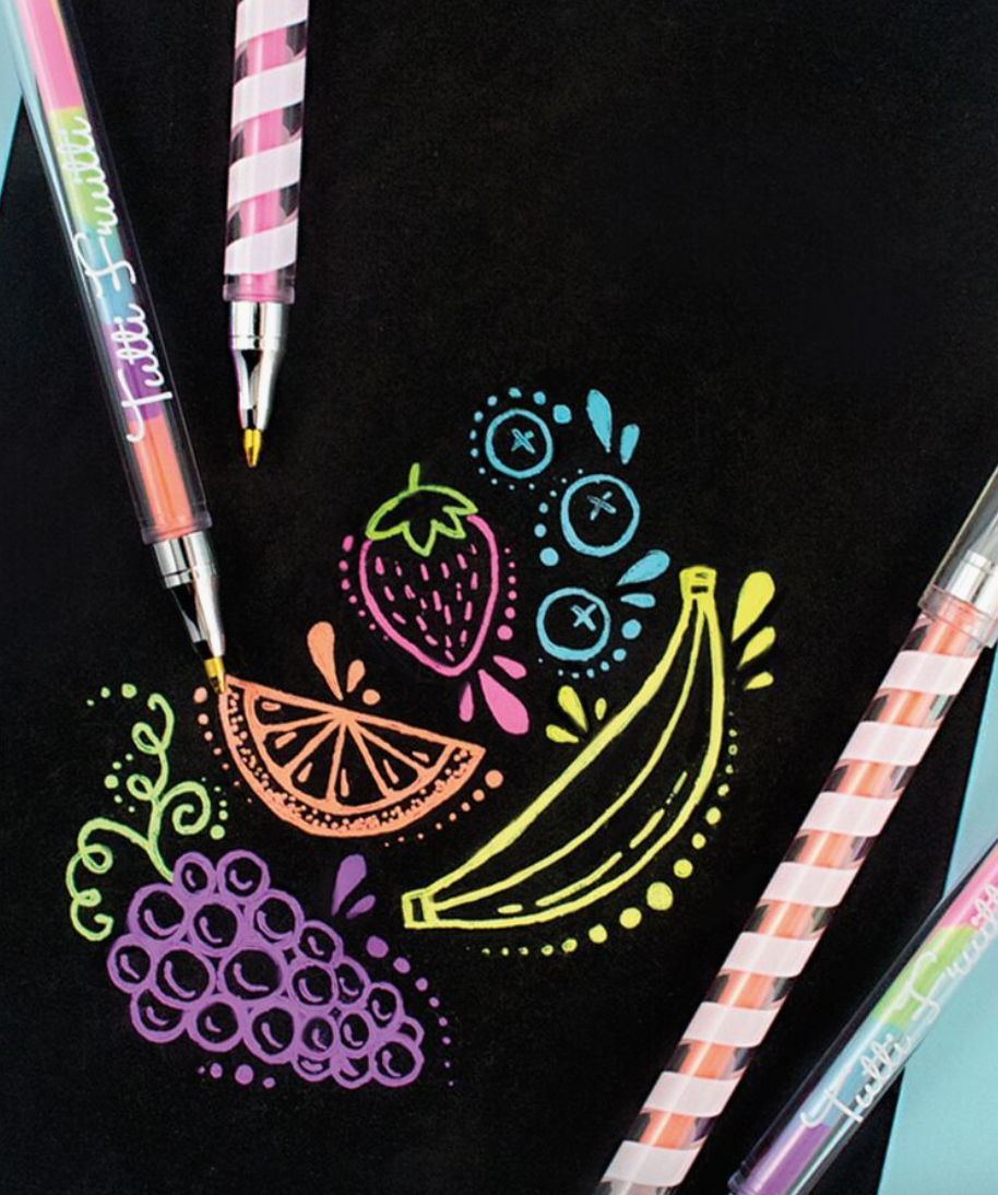 Totally Taffy Scented Gel Pens are a pleasure for your writing and drawing needs. Each pen lays down a steady sheen of wonderfully smooth and vibrant color. 6 Color Gel Pens Ink Changes as You Write Delicious Fruity Scents Looks Great on Black Paper