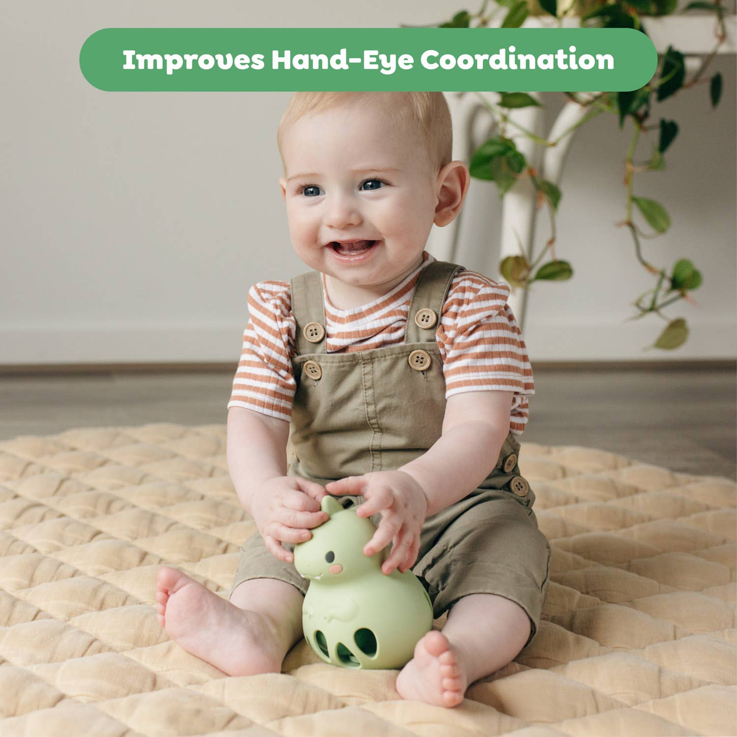 Its made of soft, safe silicone that's easy for little hands to grasp and hold, with teardrop shaped cutouts in the belly making it easy for even the youngest tots can get a grip.