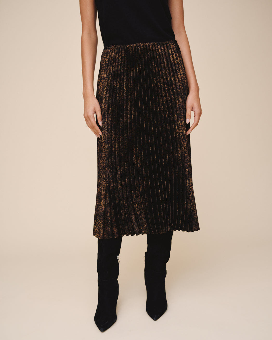 The Pleated Skirt combines timeless tailoring with effortless movement, offering a versatile silhouette that transitions seamlessly from day to evening.