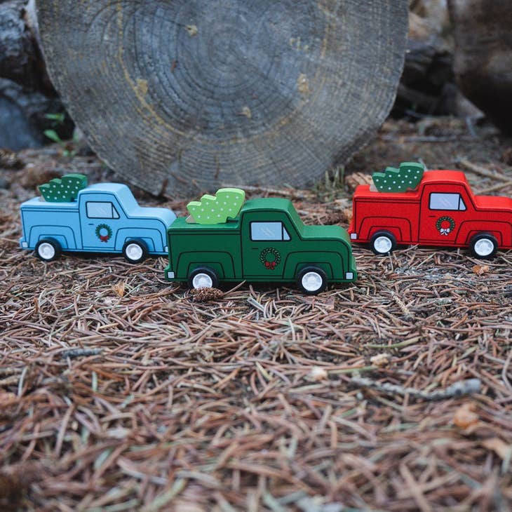 Kids and grown-ups alike love our new retro pickup trucks, complete with a freshly cut tree just in time for the holidays. Perfectly shaped for little hands, pull back the truck and then release to watch it zip home with your new Douglas Fir. Age: 18mos+