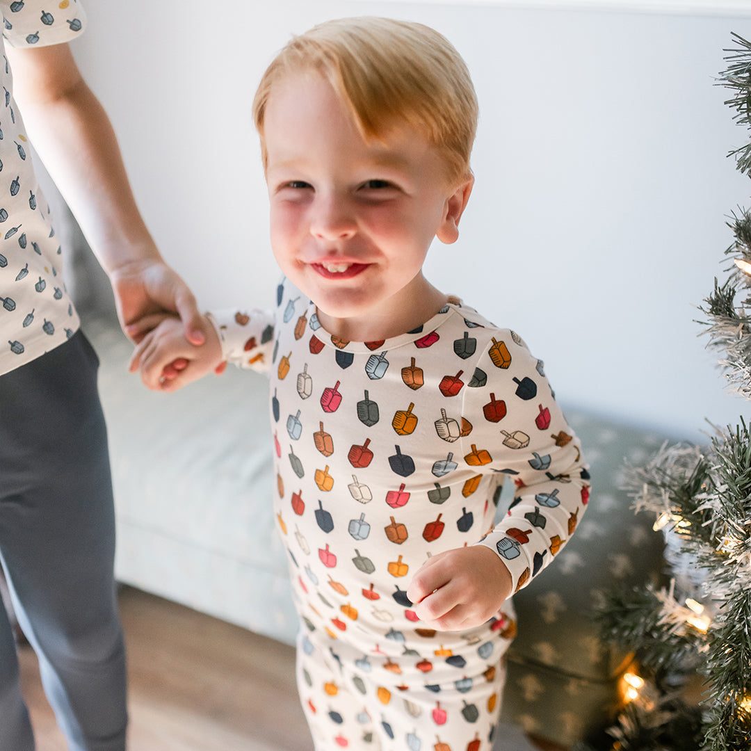 Bedtime stories! Whether waiting up for Rudolph and his pals or waking to the smell of holiday waffles, our classic long sleeve Kids Bamboo PJ Sets are the perfect cozy combo for your holiday traditions. Crafted in Bamboo fabric, these are super soft with a smooth, silk-like texture. Each 2-piece set includes a long sleeve top and elastic waist pant. Bamboo is super breathable and keeps littles warm and comfortable in the cooler seasons!