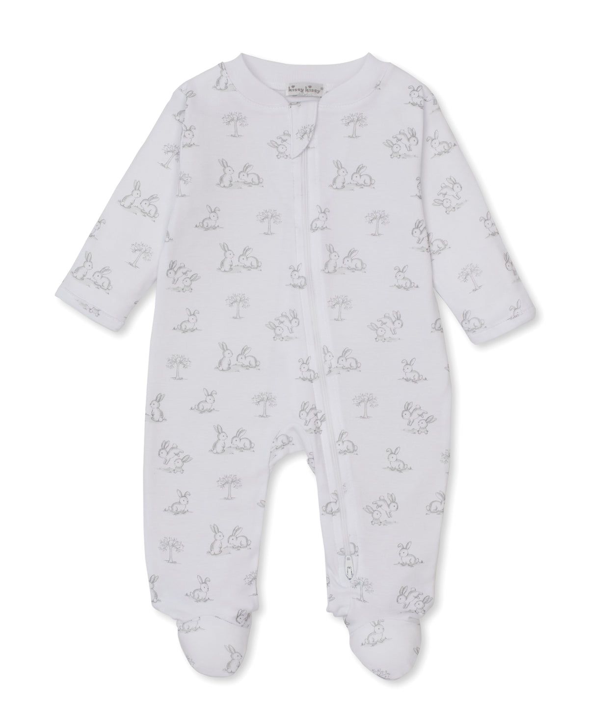Kissy Kissy Zip Footie in Silver Springtime Bunny Fun