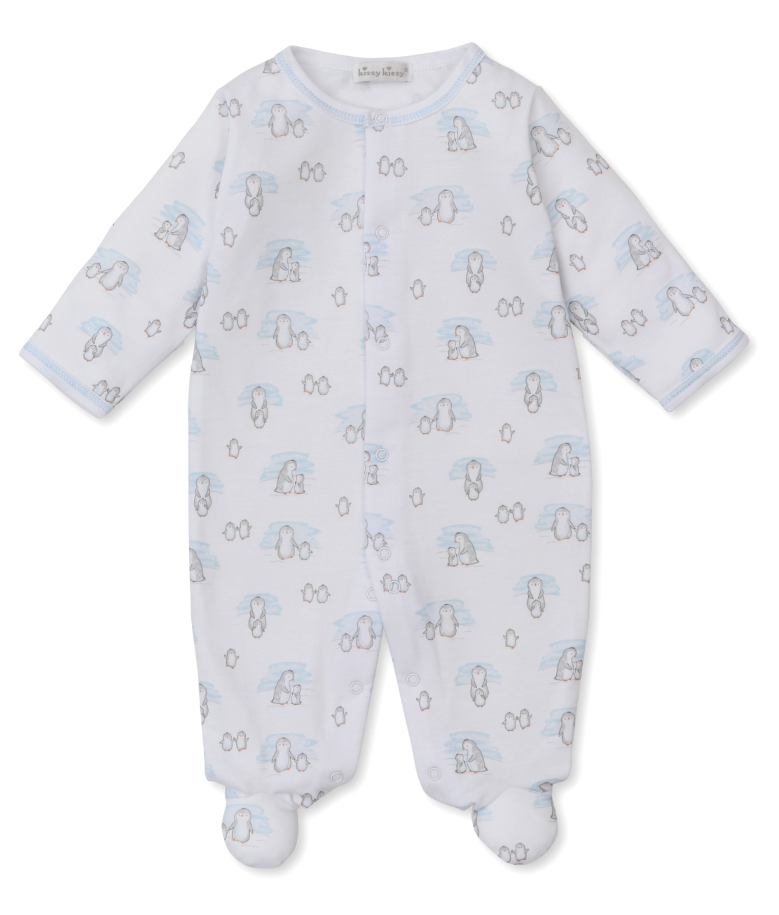 Kissy Kissy Snap Footie in Blue Snow Happy Penguins