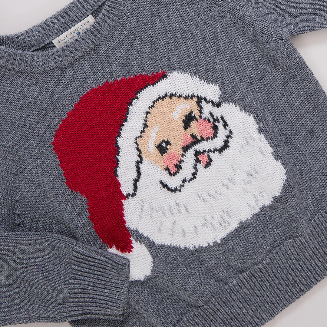 Hooray for the holidays! A joyful jolly Ole' St Nick takes centerstage on our favorite Baby Boys Oliver Sweater. A ribbed waist and cuffs elevate this well-loved shape. Our jolly Santa is woven throughout our sweater collection making magical sibling moments easy to achieve.