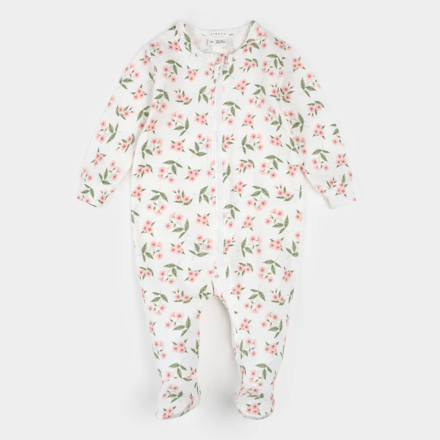 The all-in-one piece has integrated feet to keep tiny toes warm while snoozing in the stroller or heading to bed at home. Made from a light jersey, the sleepsuit is breathable and comfortable with good stretch for babies that are ready to stretch and explore their surroundings. The two way zipper on the front of the piece means messy diapers can be dealt with without removing the whole sleeper and the zip is finished with a fabric zip guard to protect their chin.